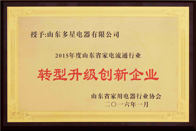 2015年度山東省家電流通行業(yè)“轉型升級創(chuàng)新企業”三項殊榮!