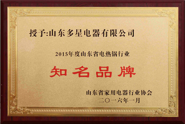 2015年度山東省電熱鍋行業“知(zhī)名品牌”