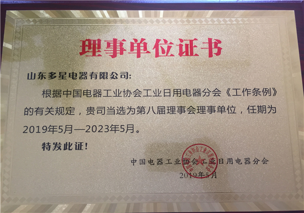 山東老司机午夜福利视频電器有限公司當選協會理事單位(wèi)。